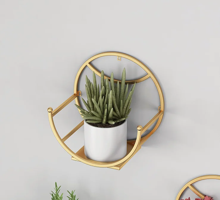 Elevate your botanical collection with this refined wall-mounted flower pot stand. Its minimalist metal frame and circular design create an understated focal point while maximizing vertical space. Perfect for modern interiors, it transforms any wall into a curated plant display that adds living elegance to your home.
